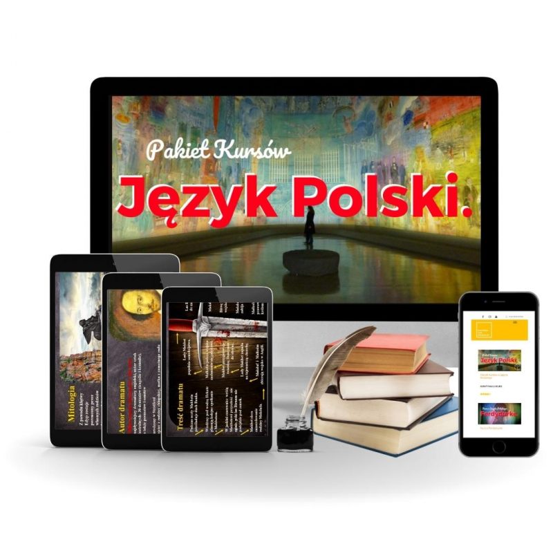 ODPOWIEDŹ: Zestaw Kursów z Języka Polskiego , który składa się z opracowań e-book i wideo. Jedną z części pakietu już posiadasz - Fiszki z Polskiego. Zatem kupując zestaw, zyskujesz dostęp do serii nowych materiałów. Forma opracowań jest przejrzysta. Korzystanie z kursu jest intuicyjnie. To, czego się dowiesz, jest wiedzą "must have" jeżeli poważnie myślisz o maturze. Kurs stanowi niepowtarzalne kompendium wiedzy o gramatyce, językoznawstwie, epokach literackich, środkach stylistycznych, motywach, lekturach, autorach i formach pisemnych.